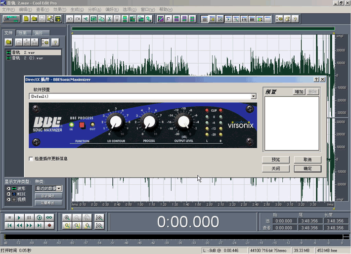 1.點擊"效果--DirectX--BBE Sonic Maximizer"打開BBE高音激勵器(圖16)。