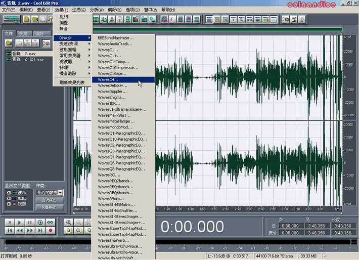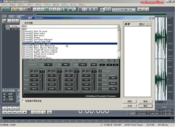 1.點擊"效果--DirectX--Waves--C4"打開WaveC4壓限效果器(圖19)。