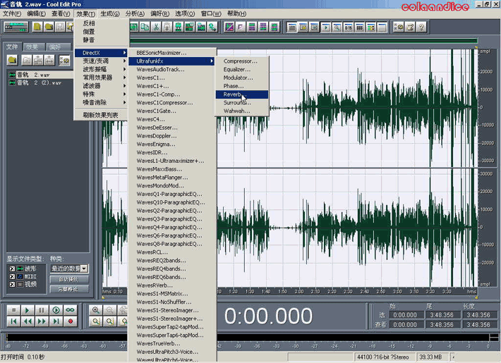 1.點擊"效果--DirectX--Ultrafunk fx--Reverb R3"打開混響效果器(圖21)。