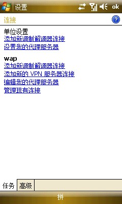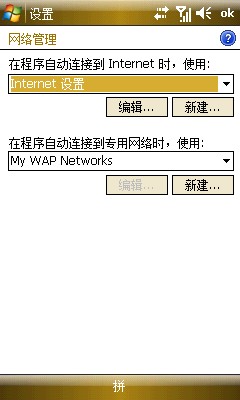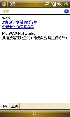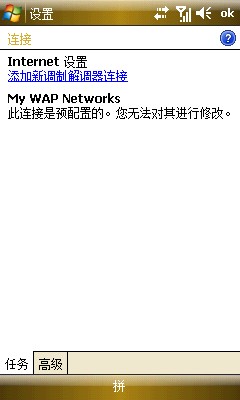 10、再回到任務(wù)選項(xiàng),就有單獨(dú)的WAP設(shè)置了,這里我把程序自動連接到INTERNET時(shí)選擇了單位設(shè)置,因?yàn)橛肳IFI方便,平時(shí)也不用NET接入,直接使用NET的朋友可以選擇INTERNET設(shè)置