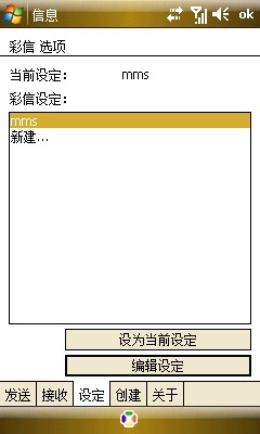 5、然后回到彩信選項(xiàng)設(shè)定欄,選擇MMS,設(shè)為當(dāng)前設(shè)定,這樣你的手機(jī)也就可以收發(fā)短信了(前提請記得開通GPRS服務(wù))
