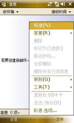 1、開始--信息--打開,收件箱或其他,菜單,選擇彩信選項(xiàng)