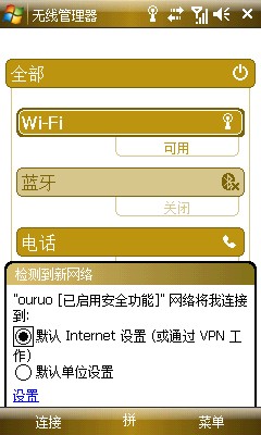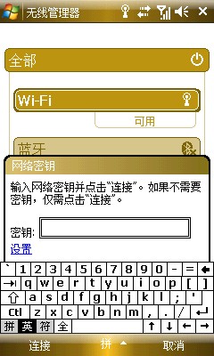 順便說下WIFI上網(wǎng),其實(shí)也很簡單的,不用任何其他的設(shè)置,只需要做的是打開無線管理器,基本路徑是開始--設(shè)置--連接--無線管理器,點(diǎn)擊WI-FI選項(xiàng),打開,之后會自動搜索可用網(wǎng)絡(luò)