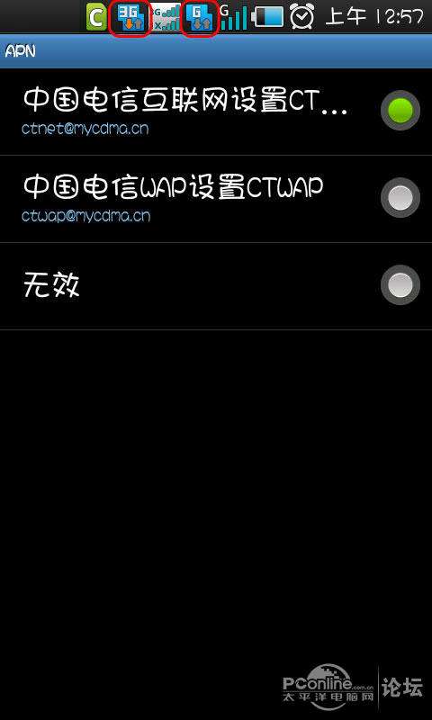 之前看破解帖子,有人說如果破解了GPRS之后就不能用回3G上網,但是進過我實際試驗,其實是可以的,如果你想用回電信3G上網,只是需要點擊設置 --無線和網絡設置--移動網絡--接入點名稱,然后點回第一個"中國電信互聯網設置CTNET"右側的圓點就可以用回電信的3G上網(這時屏幕頂部會同時出現3G上網和GSM上網的標志,但是如果你上網,它會只用3G,而不用GSM的)(如果需要用回GSM上網,則一樣步驟,選回"無效"那邊就可以用 GPRS了)