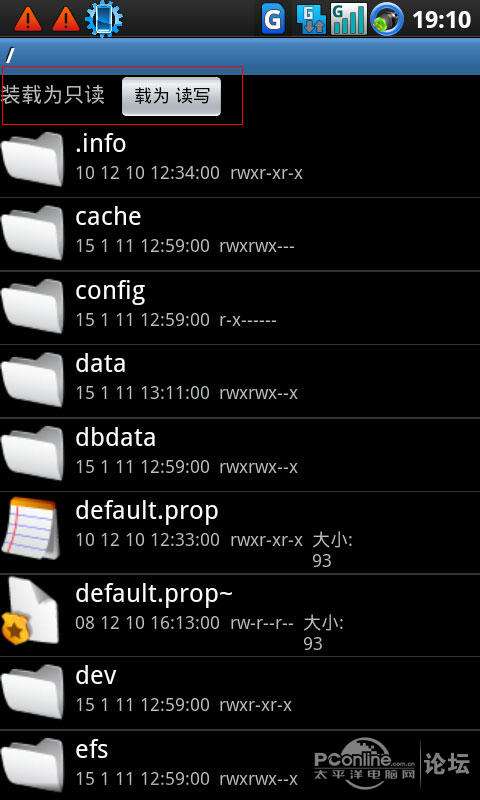 獲取Root權限之后,就需要裝一個文件管理器--R.E終極文件管理器(文章底部可下載),安裝之后打開該軟件,然后左上角,裝載為可讀寫的狀態(tài);