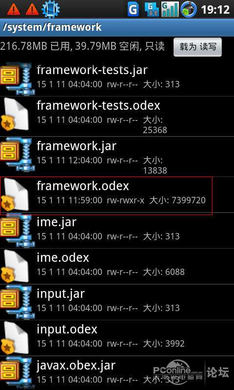 接下來在R.E終極文件管理器找到/system/framework/framework.odex這個文件,不必打開,使用破解過的framework.odex文件把手機內部這個文件替換掉(破解文件在文章底部可下載);