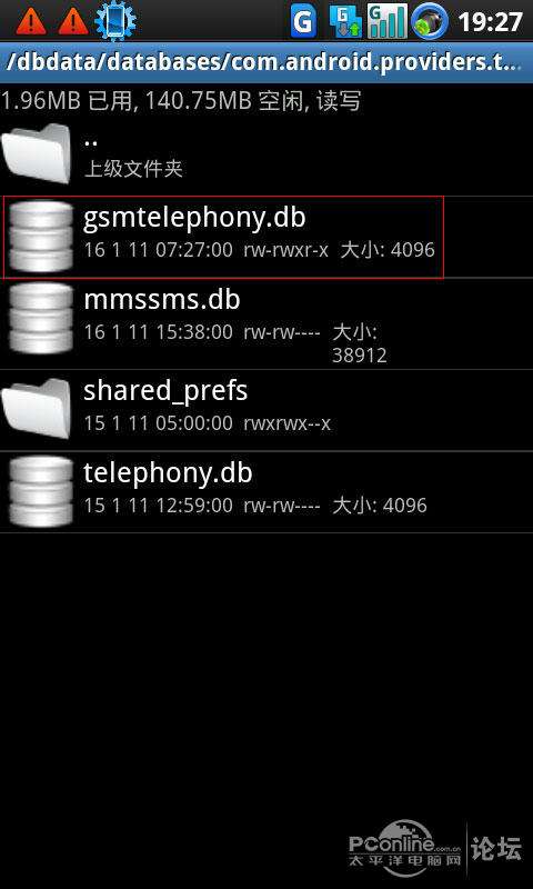 然后再使用同樣的方法替換掉/dbdata/databases/com.android.providers.telephony/gsmtelephony.db