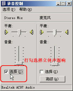 點(diǎn)擊確定,再選擇立體聲混響,這樣就可以同時(shí)聽到電腦播放的音樂和麥克風(fēng)錄制的聲音。