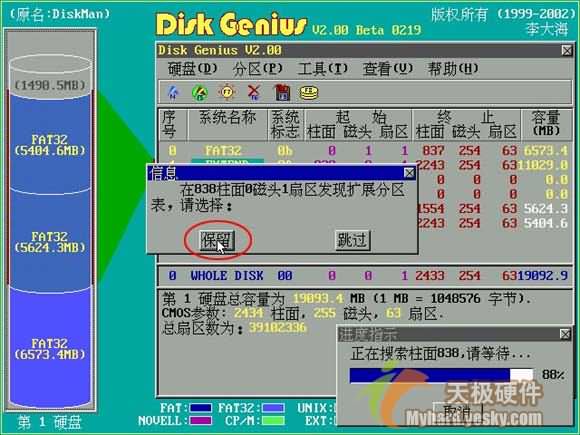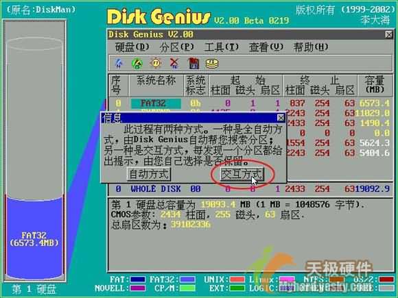 自動(dòng)方式保留發(fā)現(xiàn)的每一個(gè)分區(qū),適用于大多數(shù)情況;交互方式對(duì)發(fā)現(xiàn)的每一個(gè)分區(qū)都給出提示,由用戶選擇是否保留。當(dāng)自動(dòng)方式重建分區(qū)表不正確時(shí),可以采用交互方式重新搜索。等存盤后一切都好了,但是有時(shí)也不能保證百分之百正確恢復(fù)。所以保護(hù)分區(qū)表最保險(xiǎn)的方法還是用它選備份分區(qū)信息,并且將Disk Genius作為必備工具軟件,放到系統(tǒng)緊急啟動(dòng)盤上,有備無患,該軟件大小僅有140KB左右,一張軟盤即可存放。