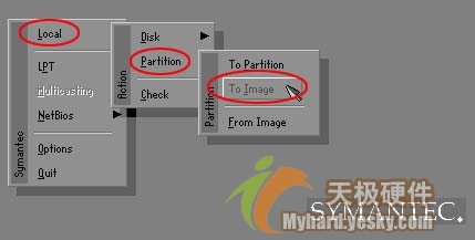啟動(dòng)Ghost后,備份分區(qū)的流程為:Local—Partition—to image
