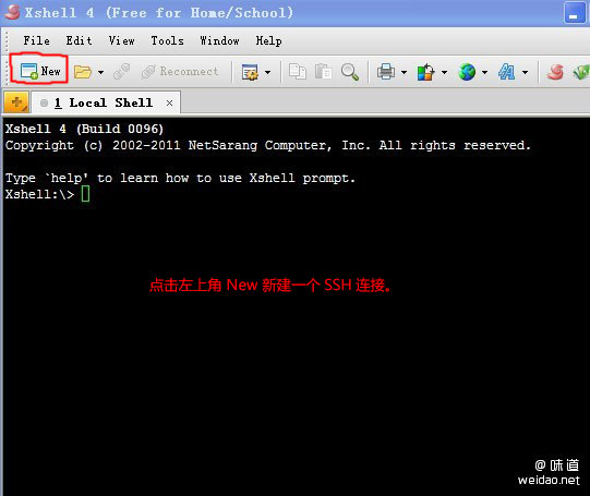 2,安裝完成后,點擊桌面 Xshell 4 打開,選擇"新建";