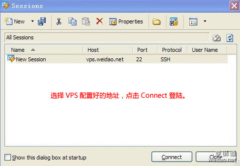 4,選擇配置好的VPS地址,點 "Connect"登錄;