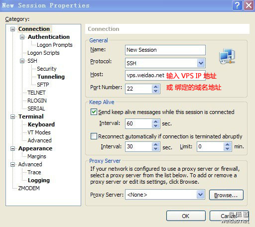 3,填寫好 "Host",輸入VPS IP地址 或 綁定的域名,點 "OK" ;
