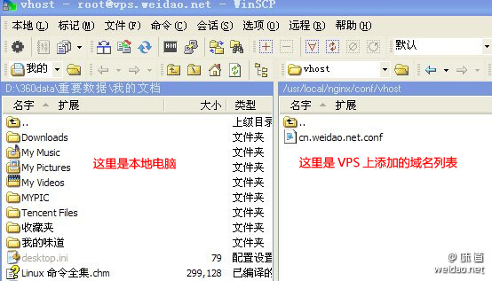3.3,在WinSCP下可清晰可見VPS服務(wù)器上所有安裝的文件,下面是lnmp的常用文件夾說(shuō)明: