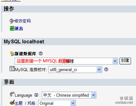 4.2,打開 http://你的IP/phpmyadmin/ 登陸,如圖所示 新建一個(gè)MYSQL數(shù)據(jù)庫(kù);