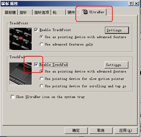 有些人的電腦看不到UltraNav,原因是少裝了一個驅(qū)動程序,到聯(lián)想的官網(wǎng)去下載“UltraNav鼠標驅(qū)動程序(Windows 7/Vista/XP) 適用機型: ThinkPad E40 ThinkPad E50 ThinkPad L412 ",裝上以后就有這個選項了。