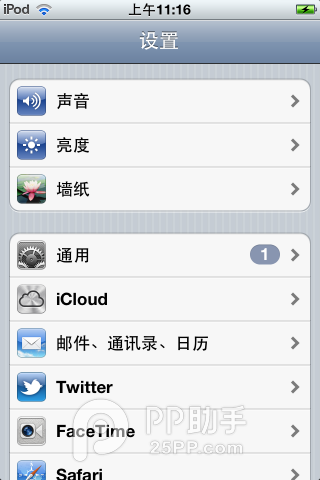 1. 將設(shè)備連接可用WIFI或3G網(wǎng)絡(luò)。(因?yàn)楣碳萘枯^大不建議使用3G網(wǎng)絡(luò)升級)