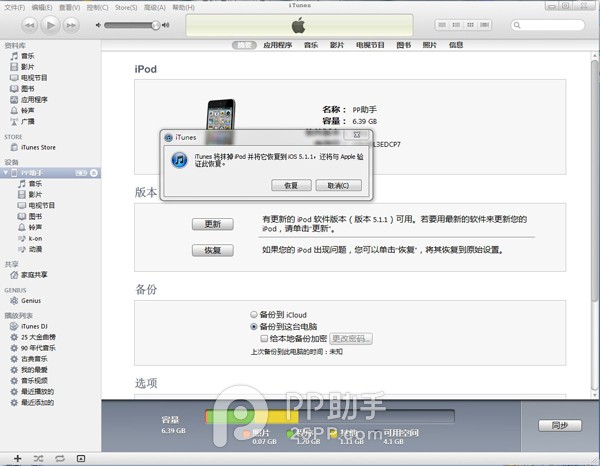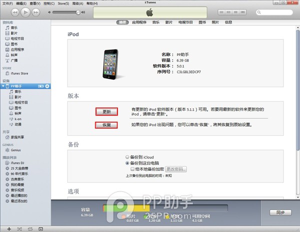 提示:通過iTunes升級或恢復(fù)會導(dǎo)致清空設(shè)備上所有的資料,建議先備份好重要資料。