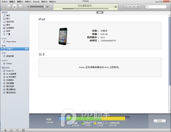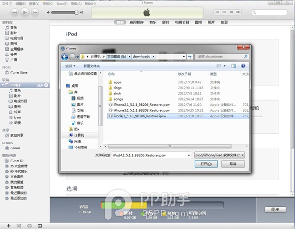 4. 選擇已經(jīng)下載固件,等待iTunes運(yùn)行。