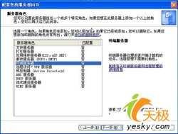 第一步:點擊“開始→設(shè)置→控制面板”,進(jìn)入“管理工具”,運行“配置您的服務(wù)器向?qū)?rdquo;。在彈出的“歡迎使用配置您的服務(wù)器向?qū)?rdquo;窗口中點擊“下一步”,安裝向?qū)谐?ldquo;預(yù)備步驟”,確保這些步驟已經(jīng)完成后,點擊“下一步”。