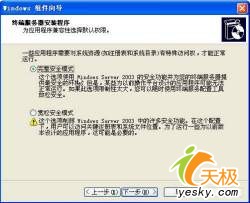 提示:使用“添加或刪除程序”安裝終端服務(wù)器的方法有些繁瑣,并要求局域網(wǎng)管理員手工配置終端服務(wù)器的某些參數(shù),建議普通用戶使用“配置您的服務(wù)器向?qū)?rdquo;。