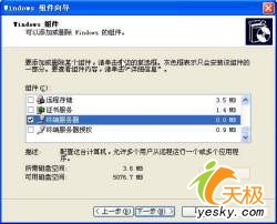 第一步:點擊“開始→設(shè)置→控制面板”,運行“添加或刪除程序”,進(jìn)入“添加/刪除Windows組件”選項頁,在“Windows組件向?qū)?rdquo;中勾選“終端服務(wù)器”(圖2)。系統(tǒng)會彈出一個提示框,點擊“是”即可。隨后顯示終端服務(wù)的介紹窗口,點擊“下一步”。