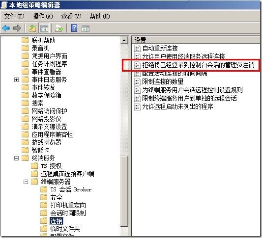 配置:拒絕將已經(jīng)登錄到控制臺會話的管理員注銷,設置啟用。