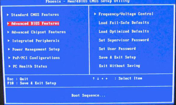上圖1:開機按Del鍵進入該BIOS設(shè)置界面,選擇高級BIOS設(shè)置Advanced BIOS Features