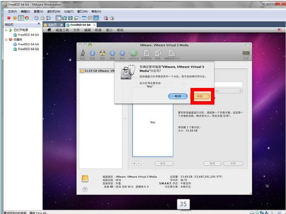 此步操作較多,請(qǐng)認(rèn)真看圖,如圖示序號(hào)順序操作,不要丟項(xiàng)(⑤步根據(jù)先前設(shè)置硬盤大小而定,教程中我只分了一個(gè)區(qū),當(dāng)然可以分更多)