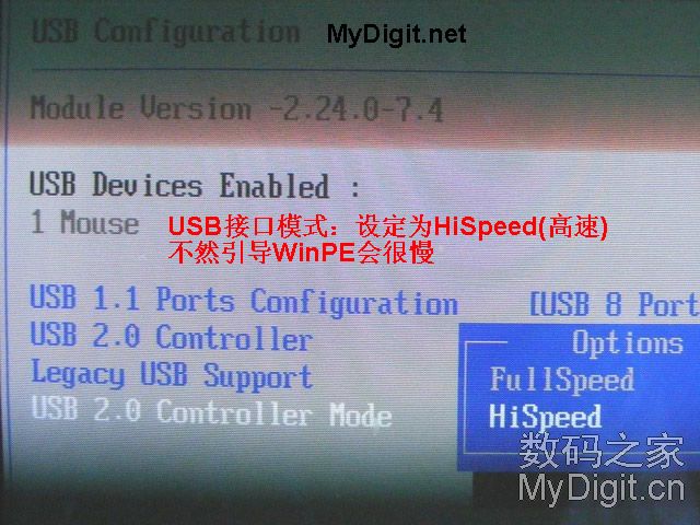 4、USB接口的速度,設(shè)為HiSpeed USB2.0高速,這樣啟動(dòng)的速度會(huì)快很多