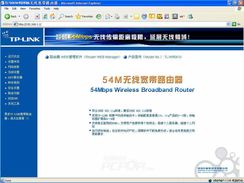 在完成上面的步驟后,我們使用電腦A,打開一個(gè)IE瀏覽器的窗口,在地址欄上輸入http://192.168.1.1即可進(jìn)入配置界面。