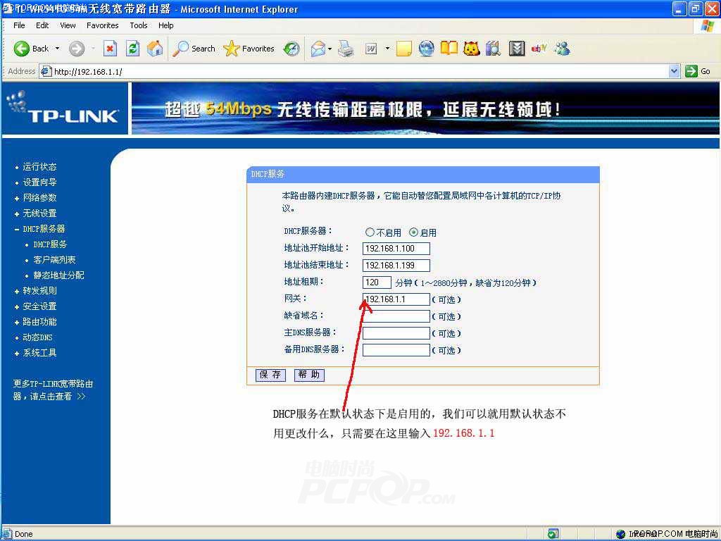 接下來我們需要配以下無線寬帶路由器的DHCP功能,讓我們今后的使用更輕松方便: