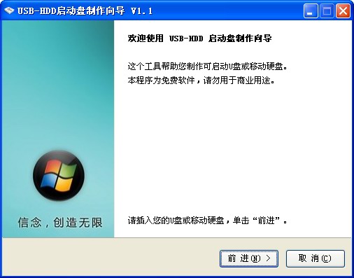 去百度搜索下載一個(gè)叫《USB啟動(dòng)盤制作向?qū)1.1》的軟件工具(我試了幾個(gè)軟件,如 WinPE老毛桃最終修改版、USBootU盤啟動(dòng)盤制作工具1.70```都失敗了,只有這個(gè)軟件試驗(yàn)成功了)
