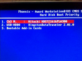 在這里我也搞了好久,試了好多次,最后的答案是: 開機(jī)按Del鍵進(jìn)入,選擇Hard Disk Boot Priority 把USB-HDD0這項(xiàng)用+或-號(hào)調(diào)到第一行,然后直接按F10回車,系統(tǒng)自動(dòng)重啟進(jìn)入 Start WinPE```````````