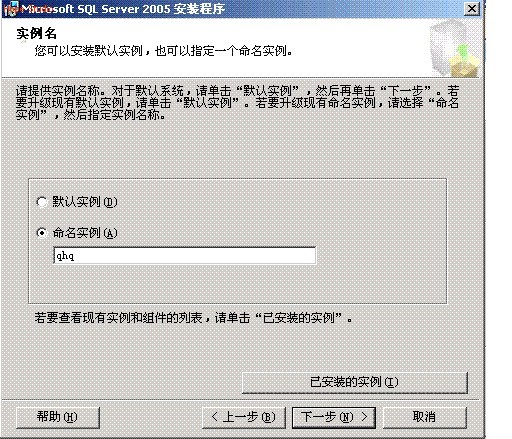 接下來在“實例名”中這是比較關(guān)鍵的一步,如果機(jī)子上沒有別的Sql版本的,選擇默認(rèn)實例名就行了,但是由于我本上原裝有Sql2000,所以這一步得選“新實例名”,然后輸入實例名,實例名可以由A-Z或a-z的16位字母組成。