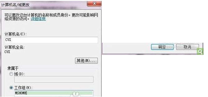 以上操作完成后,在點(diǎn)計(jì)算機(jī)--屬性---系統(tǒng)設(shè)置---計(jì)算機(jī)機(jī)名---更改??梢愿牧?/span>,如圖