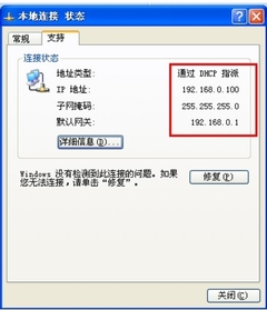 溫馨提示:路由器默認開啟DHCP功能,只要以上設置正常,那么,此計算機會自動通過此路由器得到IP地址等參數(shù)。如圖所示: