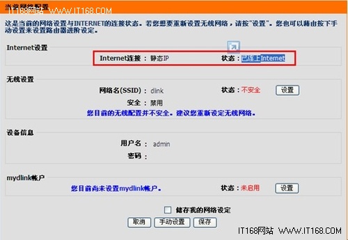 在這個圖中,可以看到路由器已經成功偵測出我當前的上網類型是靜態(tài)IP,已經成功連接到internet。