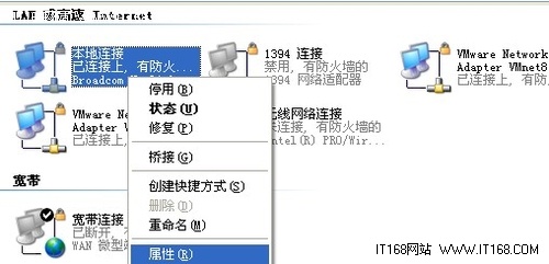 再右擊“本地連接”,打開屬性,如下圖所示: