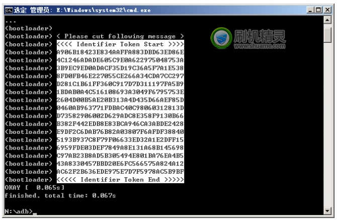 •輸入命令:fastboot oem get_identifier_token按回車