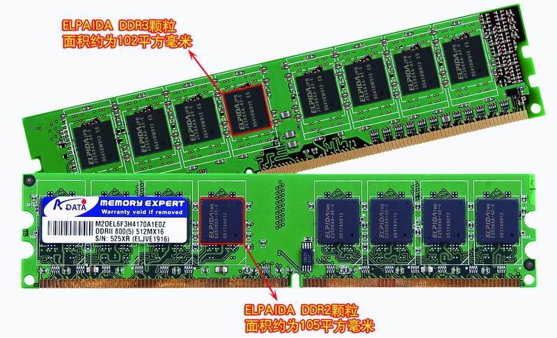 DDR2和DDR3內(nèi)存的顆粒為正方形,而且體積大約只有DDR內(nèi)存顆粒的三分之一