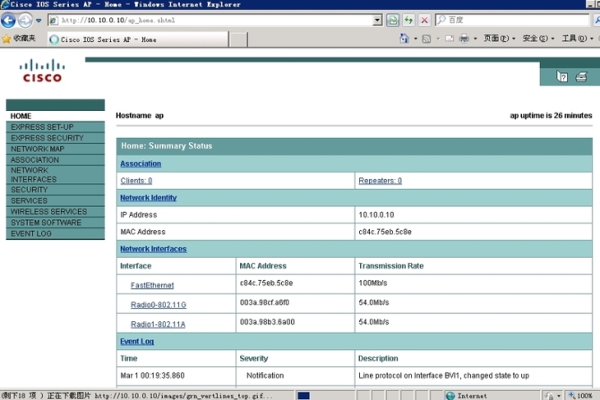 IP地址設置好后我們就可以通過WEB界面來管理,平時cisco接觸比較少還是WEB管理比較舒服些。