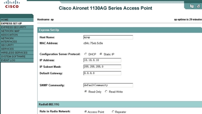 ap(config-if)#ip address 10.10.0.10 255.255.255.0