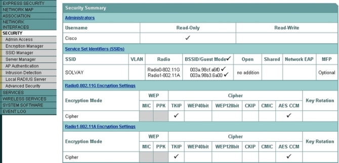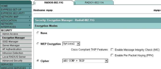 安全加密設置:定位到SECURITY-Encryption Manager,Encryption Nodes加密模式選擇Cipher:AES CCMP+TKIP,然后點擊“Apply-All”應用到所有Radio上面。