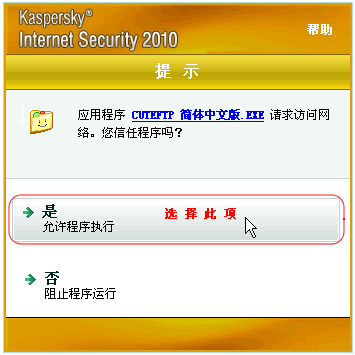 D.卡巴斯基 如果你電腦裝的是卡巴斯基,當(dāng)彈出以下窗口時(shí),請(qǐng)選擇【是-允許程序執(zhí)行】一項(xiàng)。