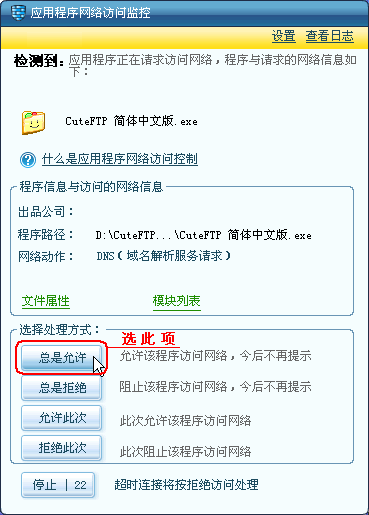 以下是常用防火墻軟件提示窗口及選項(xiàng)操作: