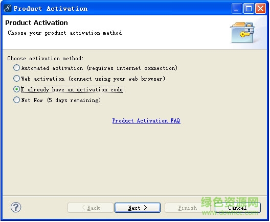 第8步:在彈出的窗口中選擇“I already have an activation code”項,然后點【Next】