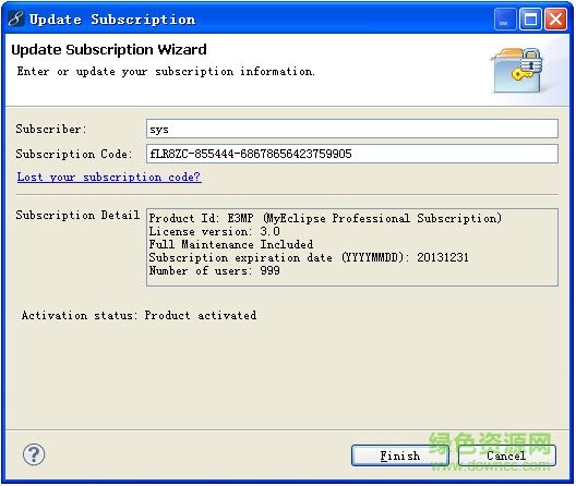 可以點擊【Continue】然后從菜單中進入,如:MyEclipse->SubscriptionInformation...