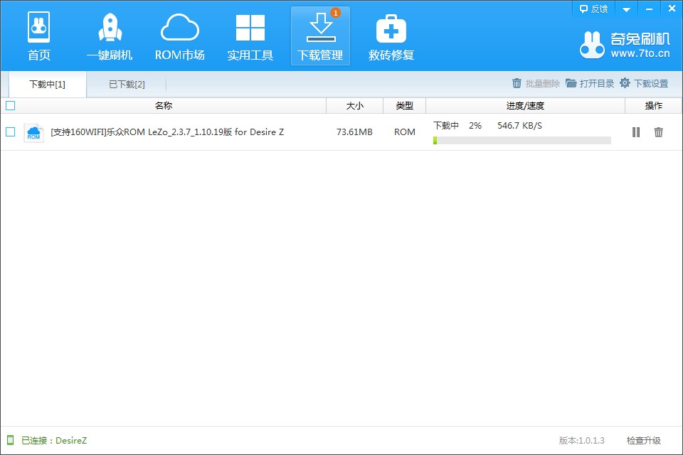 2、接下來,軟件將自動為手機匹配帶有160WIFI功能的ROM包并自動下載;如圖