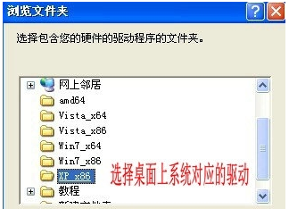 8.從菜單下拉框中,選擇桌面位置上的對應(yīng)驅(qū)動,我們這里選擇XP*86(XP32位),然后點擊確定